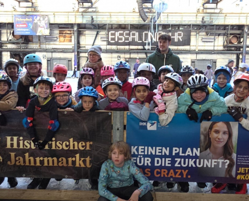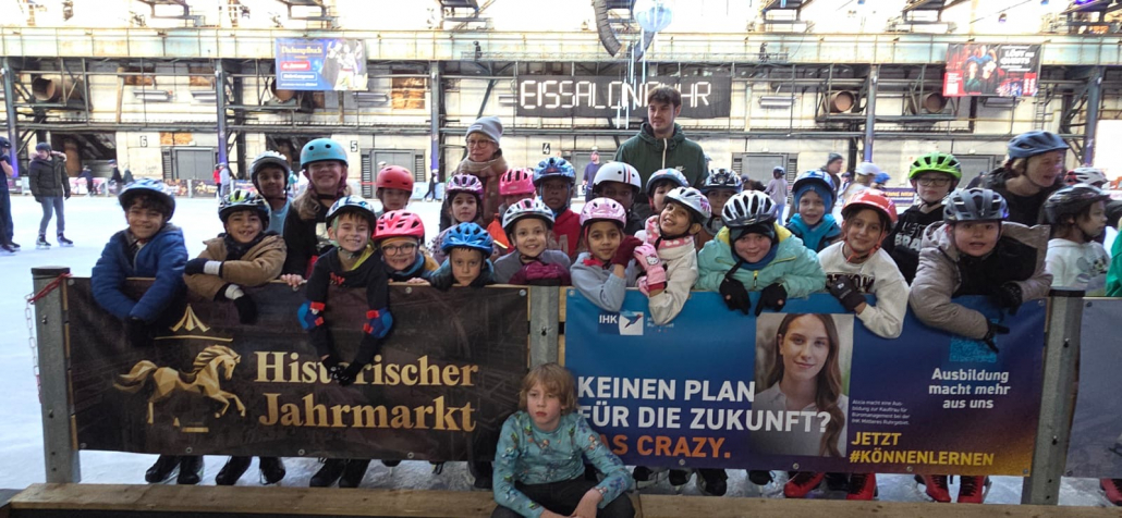 Zwischendurch mussten wir uns natürlich auch mal bewegen – bei der ganzen Schlemmerei. So ging es kurz vor den Ferien für alle Kinder in Jahrgang 3 und 4 aufs Eis in der Jahrhunderthalle! Was ein Spaß!