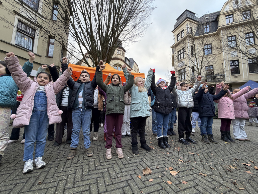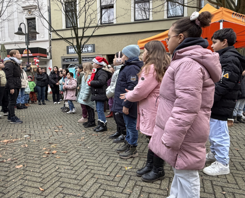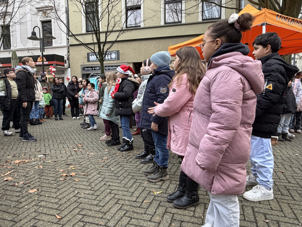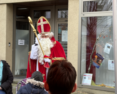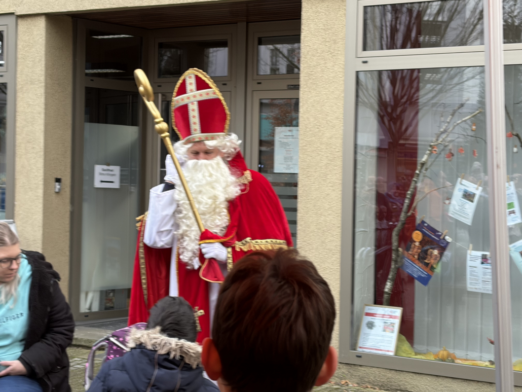 Der Nikolaus kam einfach schonmal am 5.12. vorbei, der Chor und einige OGS-Kinder haben ihn „am Stern“ begrüßt und für ihn gesungen. Auch den Baum „am Stern“ haben die OGS-Kinder für die Adventszeit geschmückt.
